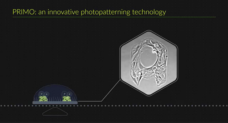 法國Alvéole的PRIMO是創(chuàng)新性定制細(xì)胞模型的工具,能在微米級別的尺度下,用非接觸、無掩膜的光學(xué)蝕刻方法制備細(xì)胞模型、以具有超高靈活度和再現(xiàn)性的生物工程手段實現(xiàn)體外微環(huán)境的定制,同時可對其機(jī)械力學(xué)和生化特性進(jìn)行設(shè)計微調(diào),具有高度的靈活性、可控性和可重復(fù)性。選擇電腦中任意一張圖案,PRIMO都能將它投射到細(xì)胞培養(yǎng)基質(zhì)上,利用非接觸式、無掩模的光刻技術(shù),在軟件和光敏試劑的幫助下獲得任意圖案的2D蛋白涂層或3D水凝膠或微流控結(jié)構(gòu)。
